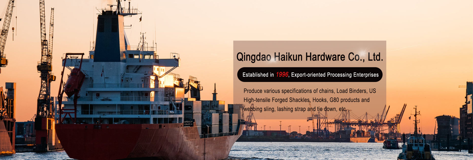 Complete products, high quality, reasonable priceQingdao Haikun Hardware Co., Ltd. established in 1996, is one of the famous export-oriented processing enterprises in Qingdao. The products include more than 300 varieties, among which chains, Load Binders, US High-tensile Forged Shackles, Hooks, G80 products and webbing sling, lashing strap and tie down, etc. There are more than 150 staffs, and several production lines including 1000T...